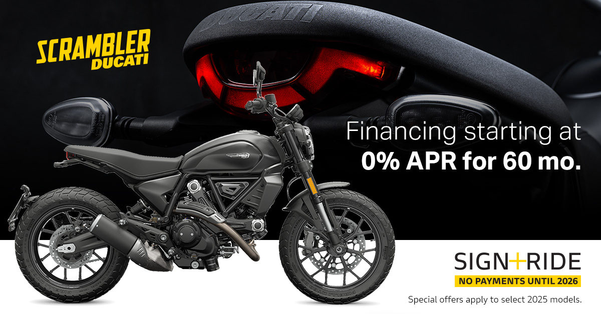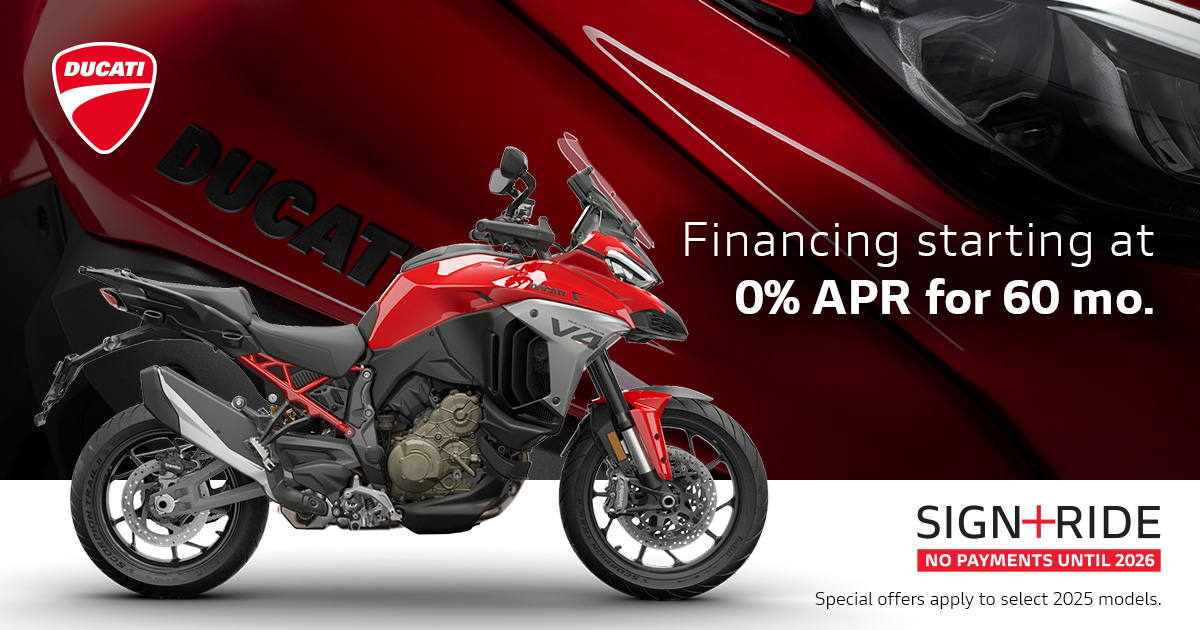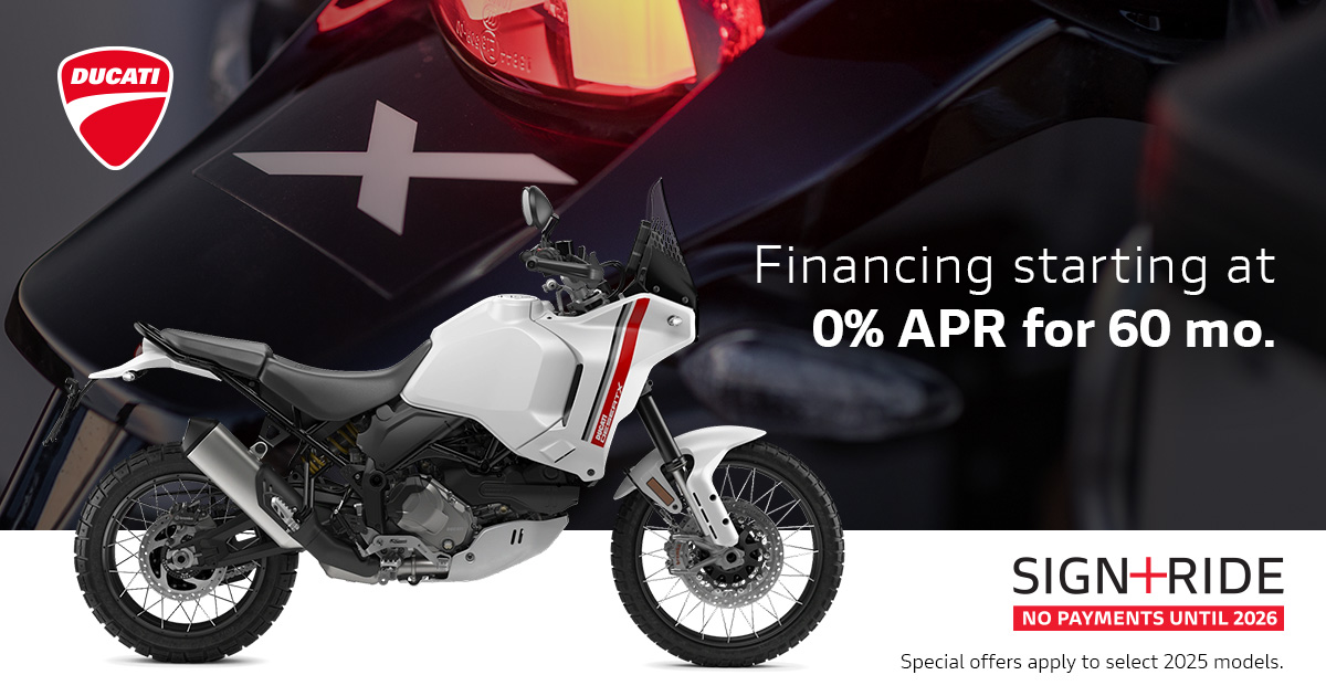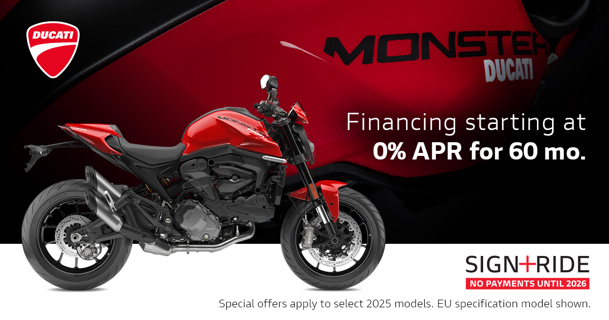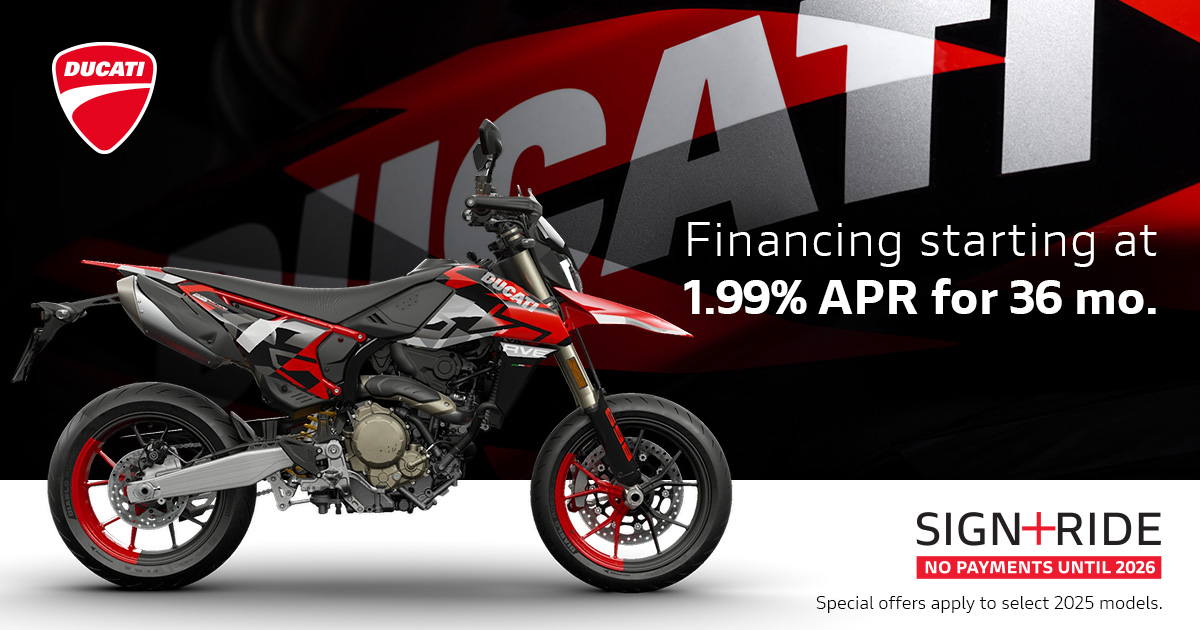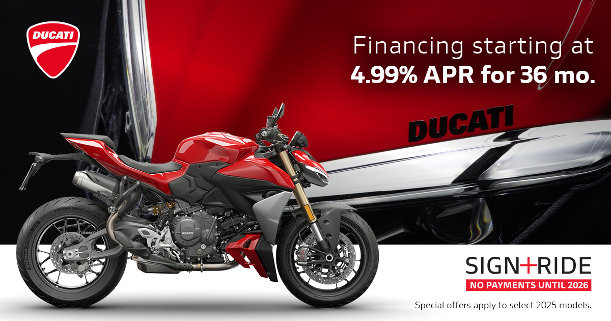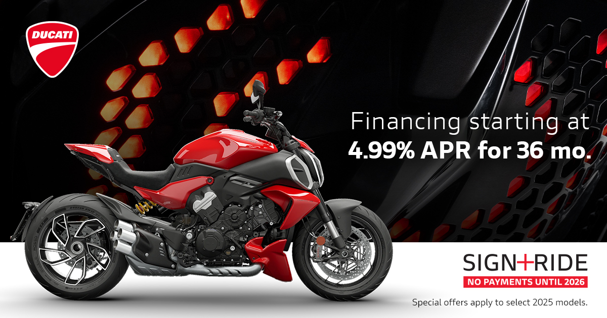 Make the most of the riding season with Ducati's current offers. Highly qualified customers can take advantage of 90 days payment-free and competitive financing.